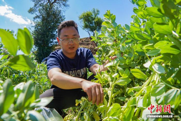 今日航拍威宁自制县哲觉镇瓦竹村蔬菜基天1角。赵庆能 摄图为3月24日,威宁自制县哲觉镇中收村蔬菜基天,培植户正在采支蚕豆。赵庆能 摄